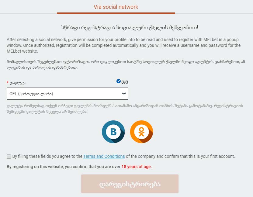 როგორ დავრეგისტრირდეთ Melbet-ზე სოციალური ქსელის მეშვეობით